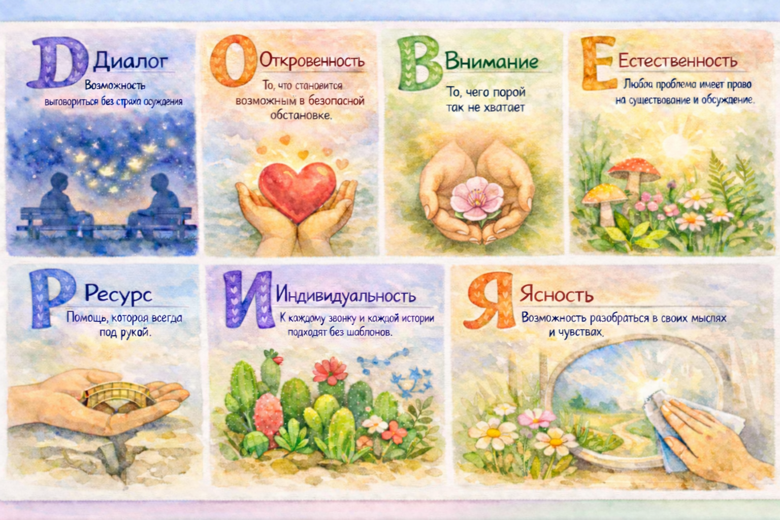 Это нормально. 🤍 И мы хотим, чтобы у тебя была возможность немного «заглянуть» к нам, понять, как всё устроено, и развеять свои сомнения ✨ Наше пространство создано по особым правилам, которые делают разговор безопасным. Здесь нет места осуждению, оценкам и нотациям. Есть только конфиденциальность 🔒, поддержка 🤝 и искреннее желание помочь 💜